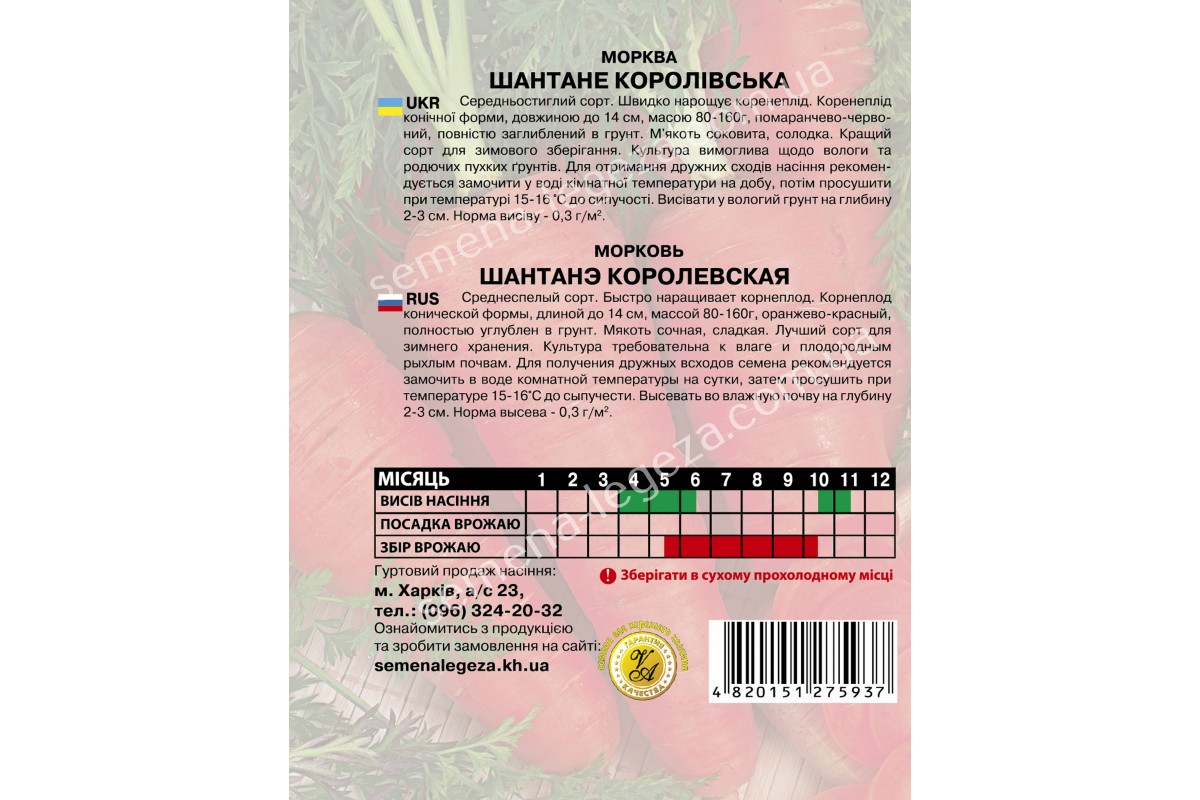КольороваМоркви "Шантане королевська" - 20 г.