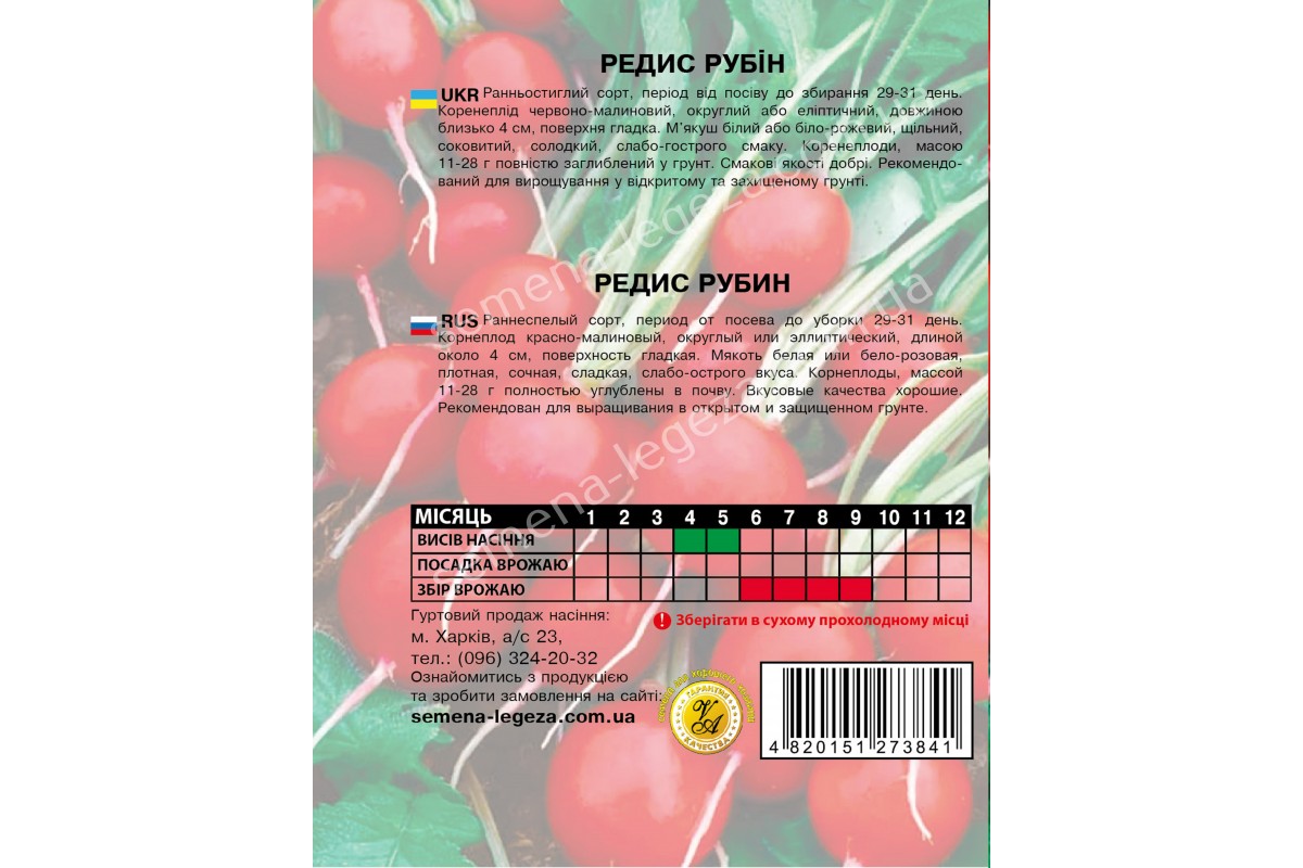 Редис "Рубін" - 20 гр.