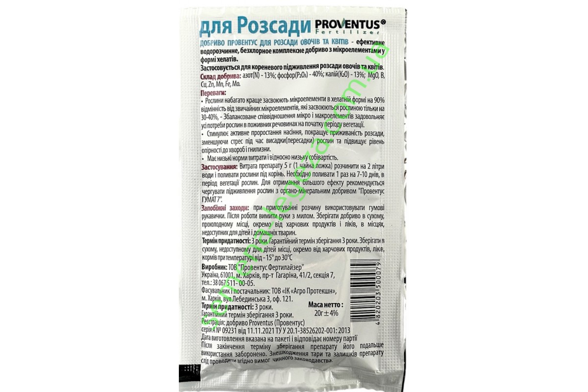 Добриво провентус для розсади - 20 гр.